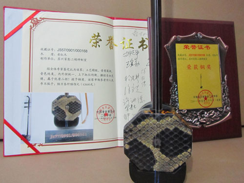 二胡制作大師丁家彭先生1949年出生樂器世家,17歲隨其祖父學琴藝,并深得精髓,其聰穎好學,悉心鉆研與 探求二胡制作,博得同行的欽佩贊許,更得了許多知名演奏家的稱贊,充分認識到二胡制作每個環節,都對二胡制作都有影響力,因此對二胡的選材,選料,蟒皮都十分嚴格,二胡整體穩定性良好,環境干擾影響極小。